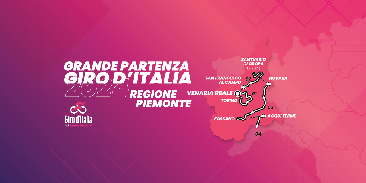 Saranno quattro le tappe del giro che attraverseranno il Piemonte, cioè 4 maggio Venaria Reale-Torino, 5 maggio San Francesco al Campo-Santuario di Oropa, 6 maggio Novara-Fossano e 7 maggio da Acqui Terme verso la Liguria.